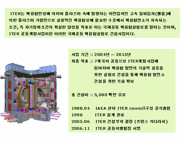 ÀÖ´Ù. 2003³â Çѱ¹Àº ITER ȸ¿ø±¹À¸·Î¼ Âü¿©¸¦ È®Á¤Áö¾úÀ¸¸ç, ITER ÇÁ·ÎÁ§Æ®·Î¼