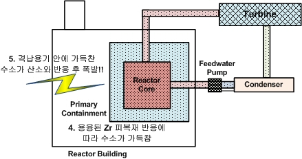 Zr(Áö¸£ÄÚ´½)+2 H2O(¹°) -> ZrO2 + 2 H2 (¼ö¼Ò) + ¿